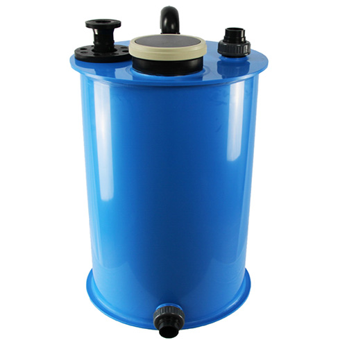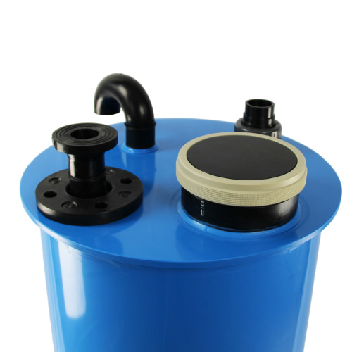 Für eine optimale Entlüftung verfügen die Behälter über einen Entlüftungsbogen mit einem Winkel von 180° und einem Durchmesser von 50 mm. Der Eingangsstutzen mit PP/ST Flansche (Durchmesser 50 mm) sowie der Verschraubungsanschluss oben auf dem Behälter (Durchmesser 50 mm) bieten flexible Anschlussmöglichkeiten.