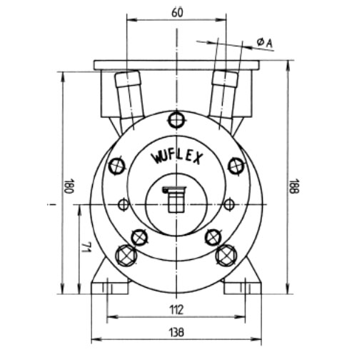 WerkstoffeDas Fördermedium kommt nur mit der Außenfläche des Pumpenbalges und dem Gehäuse in Berührung. Gehäuse und Pumpenbalg sind aus verschiedenen korrosionsfesten Materialien in beliebigen Kombinationen lieferbar: Pumpengehäuse: Polyethylen (max. 80 °C) Polypropylen (max. 90 °C) PVDF (max. 120 °C) Pumpenbalg: EPDM (max. 100 °C) HYPALON (max. 100 °C) Viton (max. 120 °C) Buna (max. 80 °C) Pumpenflansch und Deckplatte sind aus widerstandsfähigem Stahlguss gefertigt. Durch die geschlossene Bauweise sind Welle und Lager auch gegen aggressive Einflüsse von außen bestens geschützt. AufbauDie Darstellung zeigt den einfachen Aufbau der WUFLEX-Pumpe, bestehend aus: Deckplatte, Expansionsring, Pumpenbalg, Gehäuse, Flansch und Motor. mDie WUFLEX-Pumpe NF70 besteht aus zwei Pumpen NF35, montiert an einem Motor (0,55 kW). Saug- und Druckstutzen sind jeweils zu einem Anschluss zusammengefasst. Die Exzenter der Pumpen arbeiten um 180º zueinander versetzt. Dadurch bildet. Montage und WartungWUFLEX-Pumpen erreichen in beiden Drehrichtungen die volle Förderleistung. Der Pumpenkopf lässt sich zu 0°, 90°, 180° und 270° auf dem Motor montieren (siehe Abbildung). Die Wartung beschränkt sich im Wesentlichen auf das gelegentliche Schmieren der Innenseite des Pumpenbalges. Der Pumpenbalg unterliegt einem natürlichen Verschleiß und muss, je nach chemischer und mechanischer Beanspruchung, nach einer gewissen Betriebszeit ausgewechselt werden. Dies kann ohne Spezialwerkzeuge in wenigen Minuten erfolgen. Die Pumpenbälge gibt es in zwei Größen, passend für die Größe 5 - 18 und für die Größe 35. Da auch andere Teile jeweils für mehrere Pumpengrößen passen, beschränkt sich die Ersatzteilbevorratung nur auf wenige Teile. ![]() |
