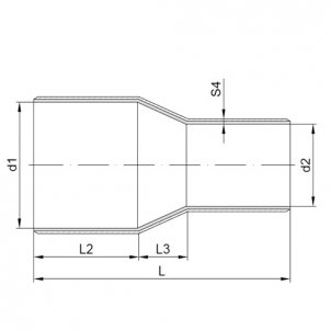 UP-GF- PP Reduzierstück DIN 16966, Form C2, Rohrtyp B, mit Laminatende, PN 10