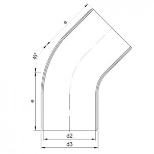 UP-GF-PVCU Bogen 45° DIN 16 966, Form E2, Rohrtyp B, Liner PVCU, mit Laminatende, PN 16