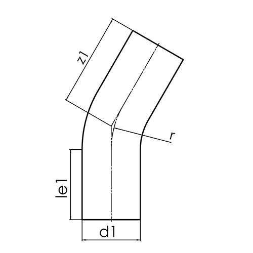 | - langschenklig zum Stumpf- und Elektromuffenschweißen - R ~ 1,5 x d1 - andere Abmessungen, Materialien und Druckstufen auf Anfrage - Toleranz ± 3° - Ausschreibungstexte finden Sie unter DOWNLOADS |