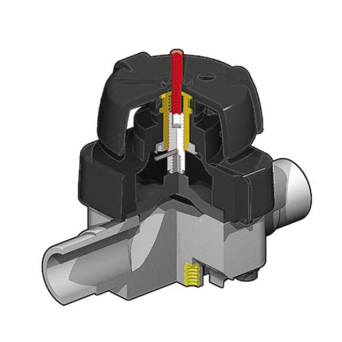| - Anschluss: mit PP-LS-Stutzen, SDR 11 zum Heizelementstumpf- und Heizwendelschweißen - Membrane: EPDM - Dichtung in Verschraubung: EPDM - mit schwarzem Handrad |