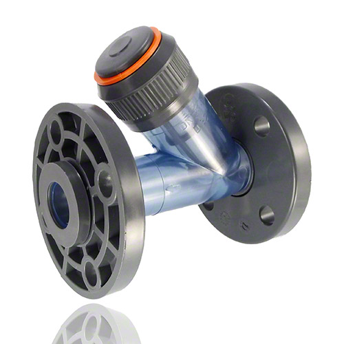 | -Dichtung: EPDM -Anschluss: Losflansch aus PVC-U -eingebautes Filternetz mit Maschenabstand 1,5 mm, Verunreinigung ab 0,5 mm trennbar -Einbau: waagrecht und senkrecht in Leitung -Durchflussrichtung: Siebteil nach unten gerichtet -andere Maschenabstände auf Anfrage |